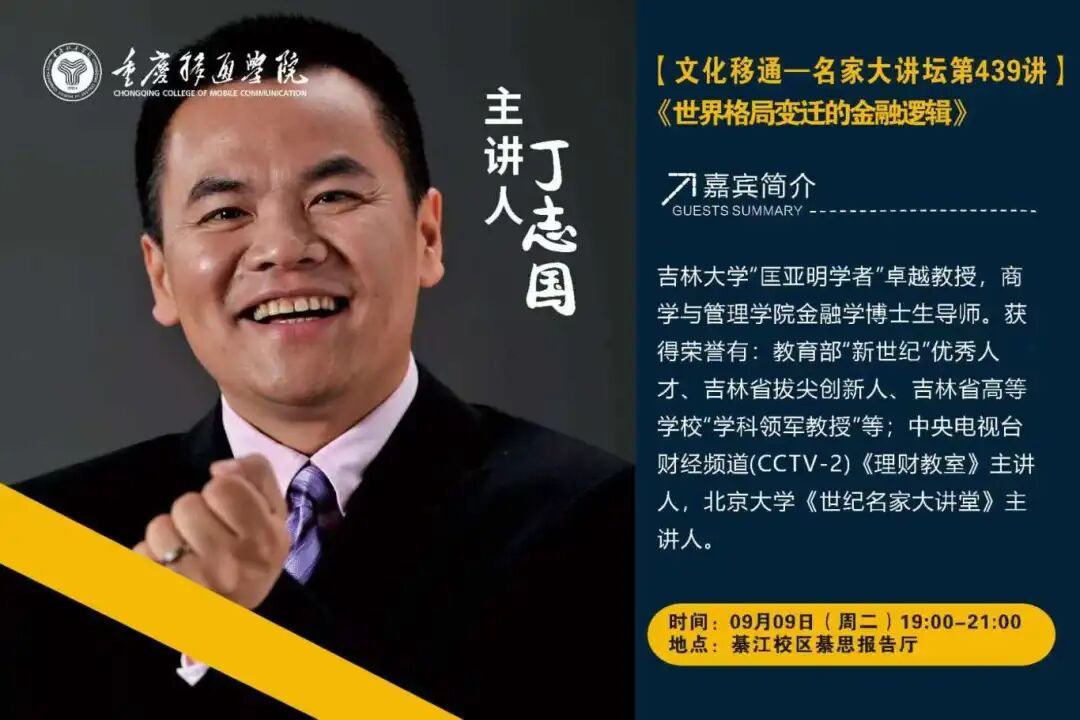 【綦江校区讲座预告】名家大讲坛第439讲 | 丁志国《世界格局变迁的金融逻辑》