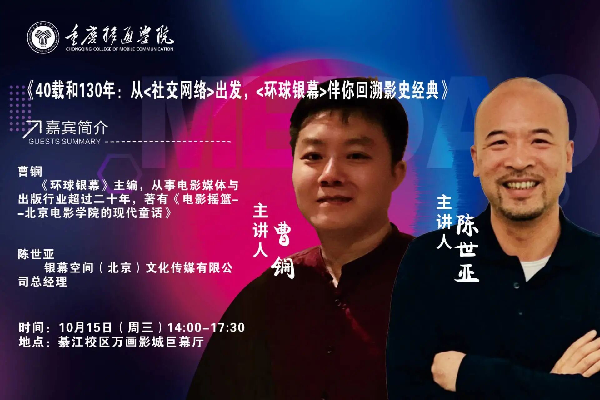 【綦江校区活动预告】|曹锎 陈世亚《40载和130年:从<社交网络>出发,<环球银幕>伴你回溯影史经典》