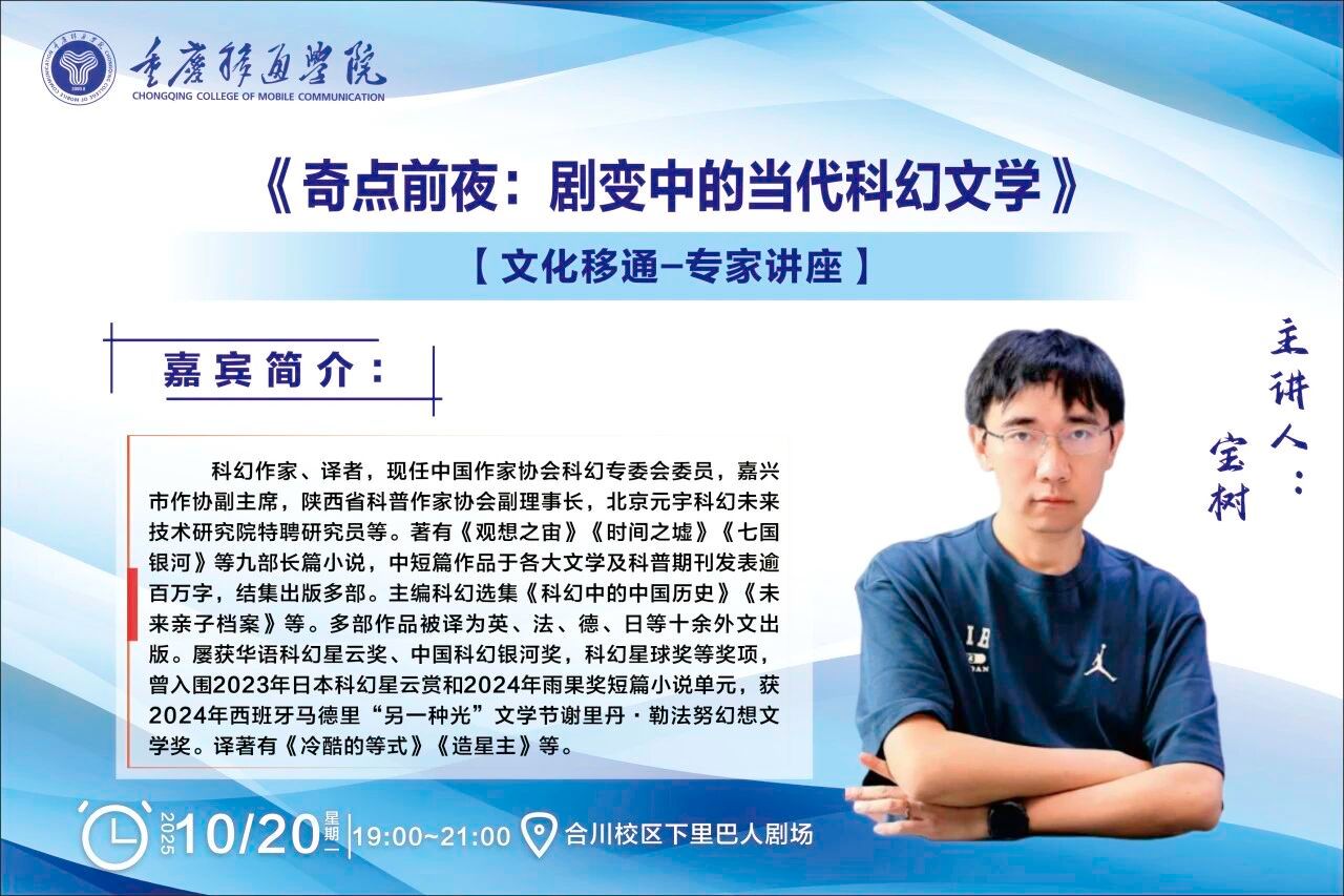 【合川校区讲座预告】专家讲座 | 宝树《奇点前夜:剧变中的当代科幻文学》
