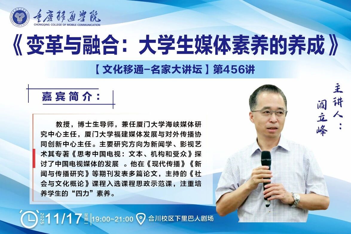 【合川校区讲座预告】名家大讲坛第456讲 | 阎立峰《变革与融合:大学生媒体素养的养成》
