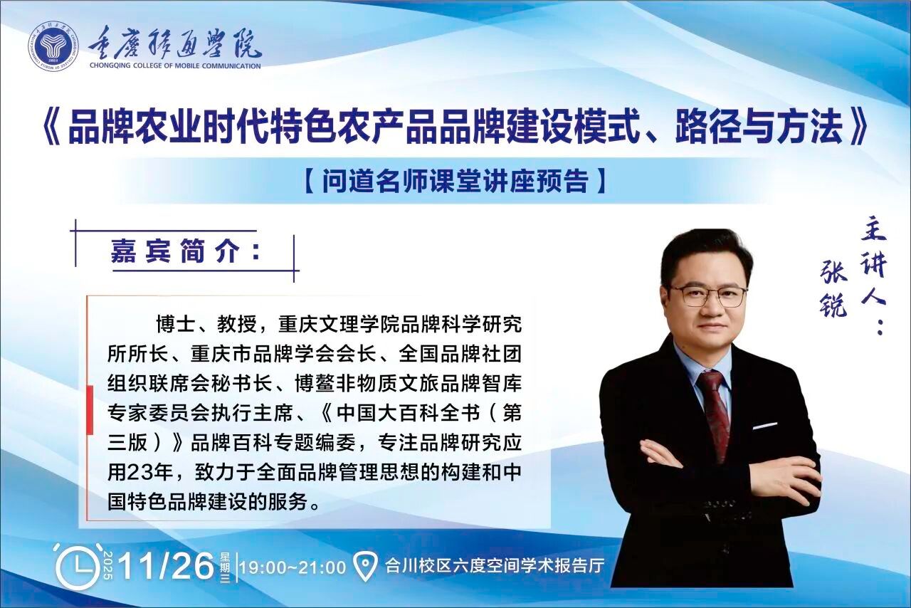 【合川校区讲座预告】问道名师课堂 | 张锐《品牌农业时代特色农产品品牌建设模式、路径与方法》