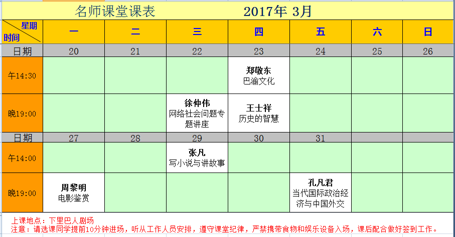 【名师课堂】2016-2017学年第二学期名师课堂选课名单暨3月份课程表